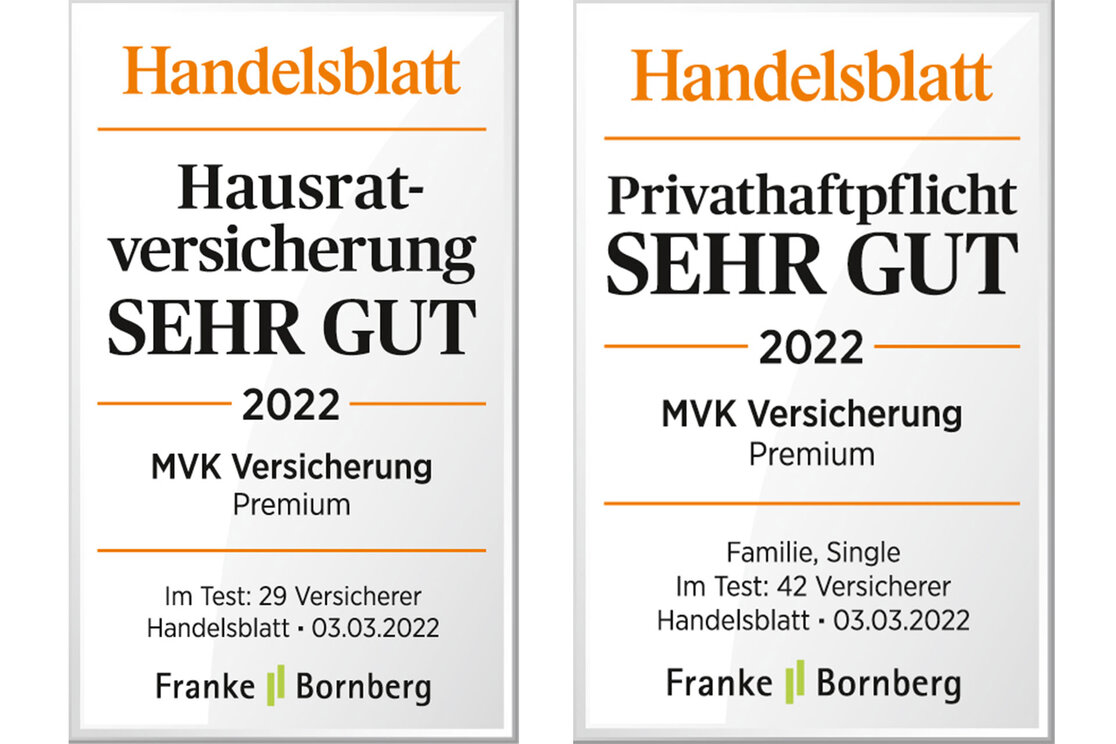 Wir sind stolz, dass wir im aktuellen Rating durch Franke und Bornberg mit unserer Hausrat- und unserer Privathaftpflichtversicherung hervorragende Ergebnisse erzielen konnten.