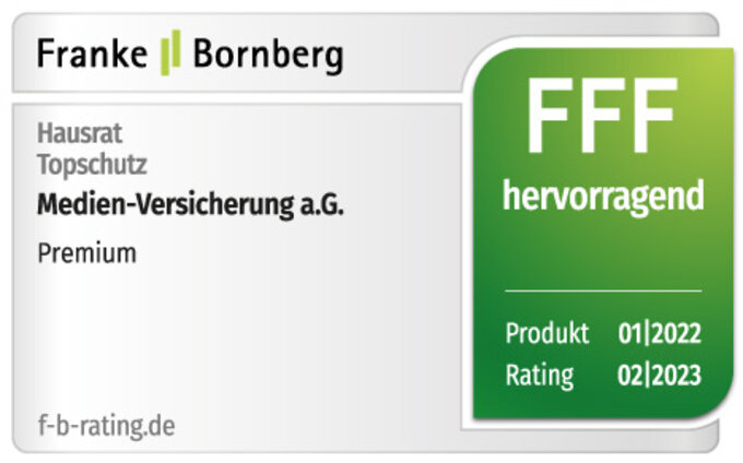 Franke und Bornberg bewertet die MVK Hausratversicherung erneut mit "FFF (hervorragend)".